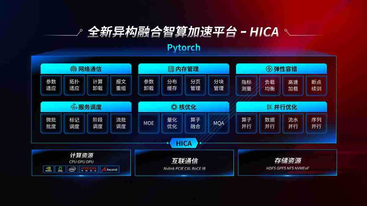 通过自研的服务层、、中间适配层、、、、以及调度编排算法,,,采用数据并行、、、、模型并行等多种并行方式,,,把并行计算任务进行有效的分解,,使其分别由相应的软件栈和算力资源来承接。。当GPU资源变化,,,HICA可以实时动态调度计算子任务并调整模型拓扑和架构,,,,以充分聚合各种算力资源。。